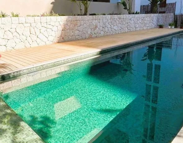 Dieses nach Süden ausgerichtete Erdgeschossapartment verfügt über 2 Schlafzimmer, 2 Badezimmer und einen großzügigen Garten. Die Immobilie befindet sich in erhöhter Lage über dem Gemeinschaftspool, der jedoch leicht und direkt vom Garten aus zugänglich ist. Die Wohnung ist mit Fußbodenheizung, Klimaanlage, indirekter Beleuchtung, Stein- und Holzböden sowie hochwertigen Materialien und erstklassigen Ausführungen ausgestattet. Zum Apartment gehören außerdem ein Tiefgaragenstellplatz und ein Abstellraum. Zusätzlich können weitere Ausstattungen wie eine Pergola, ein Whirlpool oder eine umfangreichere Bepflanzung im Garten ergänzt werden.
