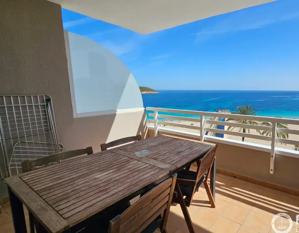 Dieses außergewöhnliche Penthouse direkt am Meer bietet atemberaubende Meerblicke und befindet sich im 5. Stock eines gepflegten Gebäudes mit Aufzug, innerhalb des renommierten INNSiDE by Meliá Wave Calviá Komplexes. In einer der begehrtesten Gegenden von Magaluf gelegen, verfügt die Immobilie über eine erstklassige Lage mit direktem Strandzugang und ist umgeben von Restaurants, Bars, Supermärkten und allen wichtigen Einrichtungen. Hervorragende Verkehrsverbindungen machen diese Lage noch attraktiver und bieten den idealen mediterranen Lebensstil. Das Penthouse verfügt über ca. 75 m² Gesamtfläche (65 m² Wohnfläche), aufgeteilt in einen Eingangsbereich, ein helles und geräumiges Wohn-Esszimmer mit direktem Zugang zu einer großzügigen, nach Süden ausgerichteten überdachten Terrasse – perfekt, um die Sonne und die spektakuläre Aussicht auf das Meer zu genießen. Die Immobilie verfügt außerdem über eine voll ausgestattete Küche, ein Doppelzimmer mit Einbauschränken und ein modernes Badezimmer. Ein zusätzlicher Balkon bietet weiteren Außenbereich zum Entspannen. Die Immobilie wird voll möbliert und ausgestattet vermietet und verfügt über eine Klimaanlage (warm/kalt) für ganzjährigen Komfort. Die Bewohner haben Zugang zu den exklusiven Einrichtungen des Komplexes, darunter Gemeinschafts- und Infinity-Pool, Sonnenterrassen, Poolbar und Concierge-Service sowie Sonderrabatte auf ausgewählte Hotelservices. Verfügbar für Kurz- und Langzeitmiete, ideal für alle, die Flexibilität, Komfort und ein erstklassiges Küstenerlebnis auf Mallorca suchen.
