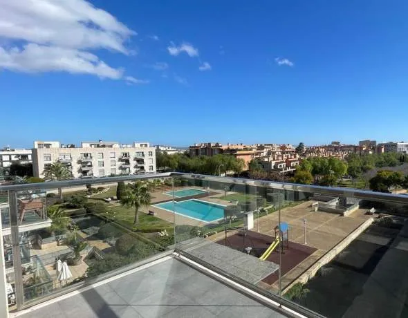 Diese 125 m² große, nach Süden ausgerichtete Wohnung verfügt über 3 Schlafzimmer, 2 Badezimmer (eines davon en suite), eine voll ausgestattete Küche und einen Hauswirtschaftsraum. Sie bietet ein geräumiges und sonniges Wohn-/Esszimmer mit Zugang zu einer Terrasse und Klimaanlage (Heizung und Kühlung). Zur Wohnung gehört außerdem eine 90 m² große Dachterrasse mit spektakulärem Panoramablick auf das Meer und das Tramuntana-Gebirge. Die Gemeinschaftsanlage bietet 2 Swimmingpools, Gärten und einen Kinderspielplatz. Ein Tiefgaragenstellplatz und ein großer Abstellraum sind im Mietpreis enthalten. Die Wohnung wird unmöbliert vermietet, ist frisch weiß gestrichen und befindet sich in einwandfreiem Zustand.
