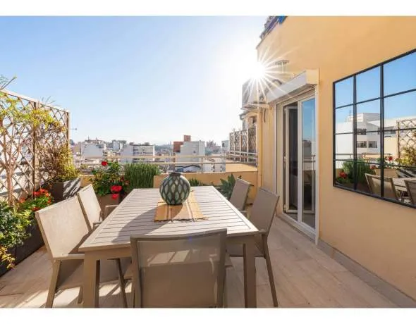 Nur wenige Schritte vom Palma Sport Tennis Club und dem Markt von Santa Catalina entfernt, bietet dieses renovierte Penthouse Helligkeit, Großzügigkeit und atemberaubende Ausblicke auf Palma, die Kathedrale und das Meer.