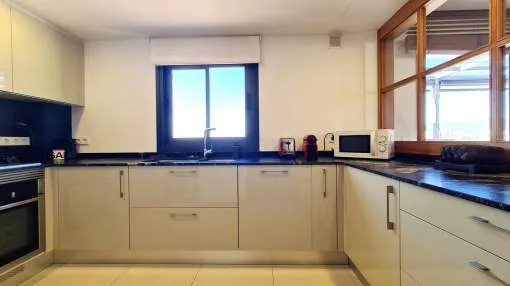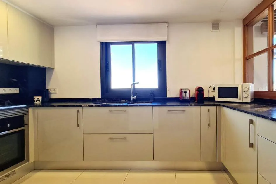 Dieses luxuriöse Penthouse befindet sich im Herzen von Palma, nur wenige Gehminuten von der Calle Jaime III, dem Paseo de Mallorca und La Rambla entfernt. Die Immobilie zeichnet sich durch ihr schönes und gepflegtes Design sowie ihre hochwertige Ausstattung aus. Durch die großen Fenster fällt viel natürliches Licht in die Wohnung, und da sie sich im obersten Stockwerk befindet, genießt sie das Privileg eines imposanten und ungehinderten Blicks auf die Altstadt, das Meer und die Bergkette. Die Wohnung besteht aus einem geräumigen und hellen Wohn-Esszimmer, das mit einer großen Terrasse mit Tisch und Stühlen, Sofa und Markise verbunden ist. Die moderne Küche mit Elektrogeräten hat ein Doppelfenster mit Blick auf die Bucht. Es gibt drei komfortable Schlafzimmer mit Holzeinbauschränken, von denen das Hauptschlafzimmer mit eigenem Ankleidezimmer, Blick auf die Kathedrale und angrenzender Terrasse ausgestattet ist, ideal, um nach dem Aufwachen eine Tasse Kaffee zu genießen. Die Immobilie verfügt über Naturholzparkett, Klimaanlage, Wasserenthärter, Zentralheizung und einen Parkplatz für ein kleines Auto. Das Objekt ist voll ausgestattet und steht für Langzeit- und Zeitverträge zur Verfügung. Für weitere Informationen zögern Sie bitte nicht, Ihren First Mallorca-Agenten zu kontaktieren.