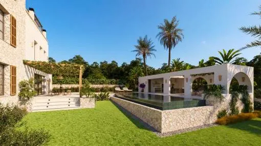 Details: In the picturesque area of Cala Figuera, just a short walk from the sea, an exceptional residential property is being planned. The project combines traditional Mediterranean architecture with contemporary design and state-of-the-art technology and is offered for sale directly by the developer on a turnkey basis. The villa is planned on a plot of approximately 1,000 sqm and will offer around 280 sqm of living space. The well-designed layout features generous indoor and outdoor areas, an infinity pool with spacious sun terraces, elegant BBQ and lounge areas, and a carefully landscaped Mediterranean–tropical garden with automatic irrigation. One of the highlights is the expansive rooftop terrace with jacuzzi and lounge area. Additional features include a versatile multi-purpose room, a refined wine cellar, and 2 fully equipped kitchens. Smart home technology, underfloor heating with an air-source heat pump, a photovoltaic system, and an automatic gas fireplace ensure modern comfort combined with sustainable energy efficiency. The spacious master suite includes a private sun terrace, a freestanding outdoor bathtub, and an outdoor shower, creating a seamless connection between interior and exterior living. Planning, design, and full project management are carried out by the developer. Turnkey purchase price: €4.0 million Returns from holiday lettings: For initial orientation you can use the “Porta Holiday Returns Calculator” without obligation to calculate your potential returns from holiday letting. NB: Due to the current legal situation it is possible that in certain municipalities renting restrictions may apply, or new touristic licences may not be granted. Your Porta Mallorquina real estate consultant will be pleased to advise you whether the property you have chosen is affected. Go to Returns Calculator. Location & surrounding area: The enchanting fishing village of Cala Figuera is hidden among cliffs, pines and fig trees at the end of the bay of the same name. The facades of the fishermen's houses and boathouses are white and ochre in colour. The strong green of the shutters forms a striking contrast to the bright buildings. Many fishermen's houses have a terrace on the water side, under which there is a boat shed. The typical Majorcan architecture predominates, with palm trees, hibiscus and almond trees in the gardens. Light-coloured stone walls form the boundary and on the stone terraces cats doze under the shady crowns of the umbrella pines. When the fishermen are not at sea, they sit together in small groups at the harbour or they mend their nets. In Cala Figuera the Balearic Island has kept its original face. At the end of the left sea arm is the idyllic port of Cala Figuera. Wooden fishing boats bob on the water next to sailing boats and motor yachts. In the port restaurants freshly caught fish and seafood are served. The restaurant owners buy the goods directly from the fishermen. On one of the many waterfront restaurant terraces you can enjoy Mallorcan delicacies and watch the leisurely hustle and bustle on the harbour quay. The fishermen's nets hang to dry in the sun or pile up on stone walls. Santanyí The historical Santanyí, which is only about 4 km away, offers the contrast program. Here every Wednesday and Saturday lively market days take place. Beautiful high-quality boutiques and galleries invite you to shop. Beaches Outstanding are the nearby fine sandy beaches in the Mondrago nature reserve.