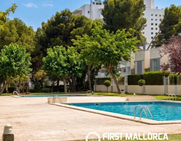 Ein besonderes Highlight ist die großzügige Terrasse mit Blick auf den Gemeinschaftspool – ideal, um das mediterrane Klima zu genießen.