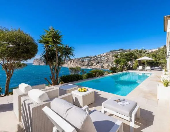 Dieses außergewöhnliche Luxusanwesen beindruckt durch zeitlos elegante Linienführung und befindet sich in der Cala Llamp, einer der begehrtesten Villenwohnlagen des exklusiven Hafenortes Port d’Andratx – direkt am Meer und mit fantastischen Panoramablick auf die beeindruckende Küstenlandschaft.