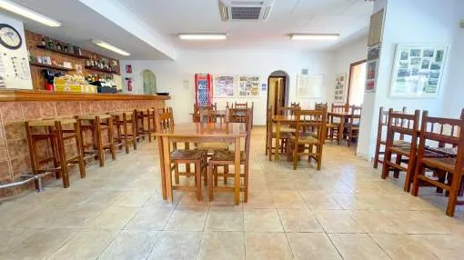 Dieses zu vermietende Geschäftslokal befindet sich an einer Ecke einer belebten Straße, ganz in der Nähe der Altstadt. Es hat eine Fläche von ca. 120 m² und eine Terrasse auf Straßenebene mit Platz für 4 Tische. Es verfügt über eine Bar-/Cafeteria-Lizenz.