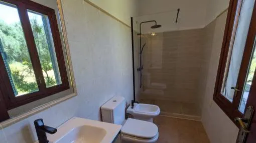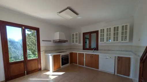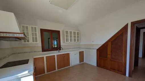 Objektbeschreibung: Diese charmante, ebenerdige Finca bietet ein idyllisches Zuhause inmitten der Natur – perfekt für alle, die Ruhe, Privatsphäre und mediterranes Lebensgefühl schätzen. Die Immobilie mit einer Wohnfläche von 121 qm verfügt über 3 Schlafzimmer, alle mit Einbauschränken, sowie 2 Badezimmer, eines davon en Suite. Der großzügige Wohn- und Essbereich mit Pelletofen sorgt für eine gemütliche Atmosphäre und bietet direkten Zugang zur großen Terrasse mit wunderschönem Blick über die umliegende Landschaft. Die angrenzende Küche und ein praktischer Hauswirtschaftsraum runden den komfortablen Grundriss ab. Im Außenbereich lädt ein großer Pool mit Sonnenterrasse zum Entspannen ein. Das Grundstück ist vollständig eingezäunt und von einem liebevoll angelegten Garten mit Oliven-, Orangen- und Zitronenbäumen umgeben – ein Paradies für Naturliebhaber. Weitere Ausstattungsmerkmale sind ein eigner Brunnen und Stadtstrom, Klimaanlage und Ventilatoren. Eine wunderschöne Finca in ruhiger Lage mit traumhaftem Blick – ideal, um das mallorquinische Landleben in vollen Zügen zu genießen. Die Finca wird zur Langzeitmiete angeboten. Lage & Umgebung: Sineu ist geographisch das zentrale Dorf Mallorcas und befindet sich in der Es Plà Region. Es verfügt über einige architektonische Sehenswürdigkeiten wie z.B. die Pfarrkirche Nuestra Senyora de los Angeles oder das Kloster Convento de las Monjas. Die Hauptattraktion ist wöchentlich stattfindende Vieh- und Kunstmarkt. Die Einwohnerzahl Sineus liegt bei 3000.