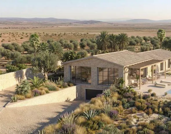 Die Immobilie mit ca. 794 m² bebauter Fläche wurde im modernen mediterranen Stil entworfen und befindet sich derzeit in der Bauphase, wodurch noch gewisse Individualisierungsmöglichkeiten bestehen. Die ebenerdige Aufteilung legt den Fokus auf Komfort, natürliches Licht und fließende Übergänge zwischen den Räumen.