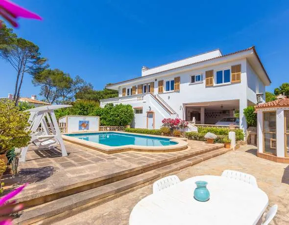 Die Villa im klassisch mediterranen Stil hat eine sehr gute Lage, in einer ruhigen Villenurbanisation nahe dem Club Náutico von Santa Ponsa, und keine zwei Kilometer vom Zentrum des Ortes entfernt. Man hat beste Anbindung an den gesamten Südwesten der Insel sowie Palma und den Flughafen. In unmittelbarer Nähe gibt es eine kleine Sandbadebucht, zwei Golfplätze und ein weitläufiges Naturschutzgebiet. Die Villa besteht aus zwei Wohneinheiten mit separaten Eingängen. In der oberen Etage befindet sich der Hauptwohnbereich mit vier Schlafzimmern, Wohn-/Esszimmer, Küche, Wirtschaftsraum und Gästetoilette. In der unteren Etage der Gästebereich mit zwei Schlafzimmer und Wohn-/Essbereich mit offener Küche. Das Haus bedarf einer Modernisierung, um es an einen zeitgemäßen Komfort anzupassen, bietet aber viel Potential für die Umsetzung eines neue Raumkonzeptes und eigener Ideen. Es ist umgeben von großzügigen Terrassen und einem liebevoll angelegten Garten mit mediterranen Pflanzen, Obstbäumen, Barbecue und zwei kleinen Casitas.