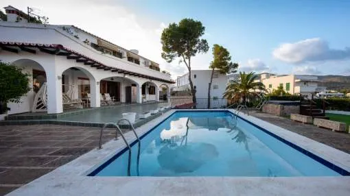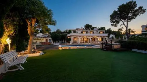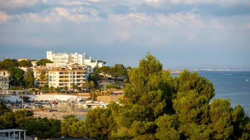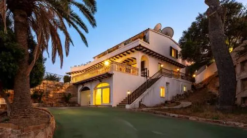 Ein echtes Juwel in Palmanova – diese außergewöhnliche, nach Süden ausgerichtete Villa befindet sich auf einem der gefragtesten Grundstücke am Hang und bietet atemberaubende Meerblicke sowie eine unschlagbare zentrale Lage. Nur wenige Gehminuten von den Sandstränden, Geschäften und Restaurants entfernt vereint diese Immobilie Ruhe, Komfort und Prestige.