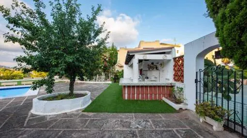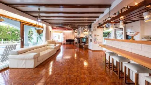 In einer ruhigen Wohnstraße gelegen, verfügt die Villa über ein großzügiges Raumkonzept mit offenem Wohn-, Ess- und Küchenbereich im Erdgeschoss – perfekt für geselliges Beisammensein. Sonnige Terrassen umgeben den privaten Pool und den überdachten Grillbereich – ideal, um Mallorcas Lebensstil im Freien das ganze Jahr über zu genießen.