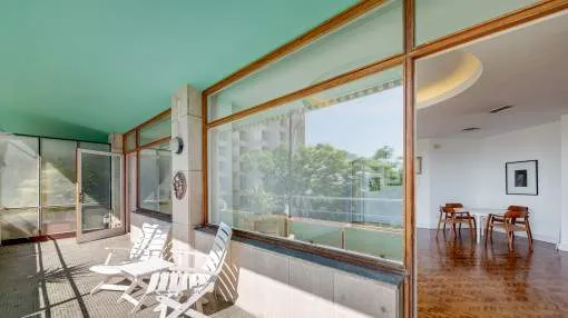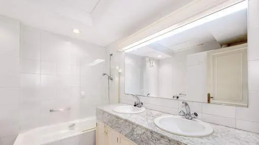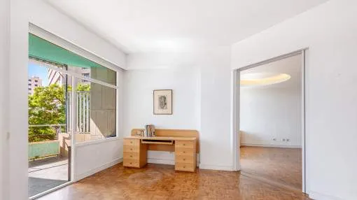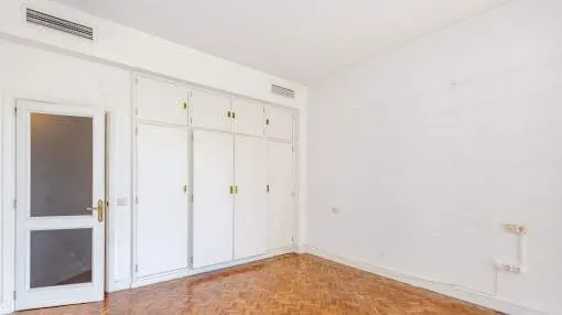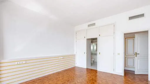 Objektbeschreibung: Dieses prächtige Anwesen befindet sich in einer der begehrtesten Gegenden von Palma. Es befindet sich in einem Gebäude mit großer Tradition und sehr gut in der Stadt bekannt, und umgeben von luxuriösen Hotels, die besten Restaurants, sowie alle Arten von Dienstleistungen. Es ist ein hervorragender Ort, um an den Booten entlang zu schlendern oder einen Drink im schönen Club de Mar oder einem seiner vielen Cafés zu nehmen. Die Wohnung ist renovierungsbedürftig, aber mit ihrer guten Aufteilung, Lage und der großen Terrasse könnte sie ein Juwel für dauerhaftes Wohnen oder einfach nur als Feriendomizil werden. Die 128,43 qm Wohnfläche verteilen sich auf 2 Doppelschlafzimmer - eines davon mit Badezimmer en Suite - ein weiteres Badezimmer, ein geräumiges Wohn-Esszimmer, eine Küche und eine große Terrasse von 25,79 qm. Einige der Merkmale sind Parkettböden, halb offene Küche zum Wohnzimmer, Klimaanlage warm und kalt, Einbauschränke. Die Gemeinschaft hat spektakuläre Gärten, sehr gut gepflegt, vor allem der große Pool-Bereich, eine Oase in der Mitte des Paseo Marítimo. Darüber hinaus umfasst der Verkauf dieser Eigenschaft auch einen Parkplatz im Nebengebäude befindet. Lage & Umgebung: Der Paseo Marítimo bildet die Grenze der Inselhauptstadt zum Wasser hin und erstreckt sich über 6 km vom neu errichteten Hafen im Osten, über das Altstadtviertel, der alten Mole, der Kathedrale - dem bekannten Wahrzeichen - und endet im Westen kurz vor Portixol. Direkt am Wasser führt die beliebte Promenade entlang und macht hier dem Namen Paseo Marítmo alle Ehre. Denn ganz gleich welcher Aktivität man auch nachgeht, ob Radfahren, Laufen oder einfach nur Spazieren gehen, lässt sich hier immer eine frische Brise direkt am Meer genießen. Als beliebter Treffpunkt für die ganze Stadt pulsiert hier das Leben nicht nur am Tag. Das reizvolle Nachtleben bietet neben den angesagtesten Clubs der Stadt, originelle Pubs, Cafés und Restaurants für jeden Geschmack. Das Bild des Paseo Marítimos wird bestimmt durch sonnige Apartmenthäuser, die zumeist nach dem Süden ausgerichtet sind.