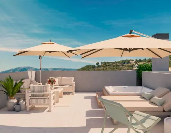 Dieses Penthaus zum Erstbezug befindet sich in einer exklusiven, modernen Neubau-Residenz mit gepflegten gemeinschaftlichen Gartenanlagen, Swimmingpool und Kinderspielplatz. Die Wohnanlage liegt in einer ruhigen, gewachsenen Wohngegend von Palma de Mallorca, die sich durch ihre Nähe zu renommierten Golfplätzen, internationalen Schulen sowie eine sehr gute Anbindung an das Stadtzentrum auszeichnet. Auch die umliegenden Naherholungsgebiete sind in kurzer Zeit erreichbar.