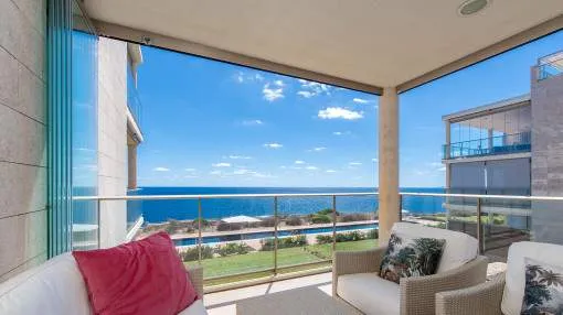 Im ersten Stock befinden sich drei Doppelschlafzimmer mit Einbauschränken und zwei Bäder. Eines dieser beiden Schlafzimmer verfügt über einen Balkon mit herrlichem Meerblick. Das Hauptschlafzimmer hat Meerblick, einen Ankleideraum und ein eigenes Bad mit Hydromassage-Badewanne.