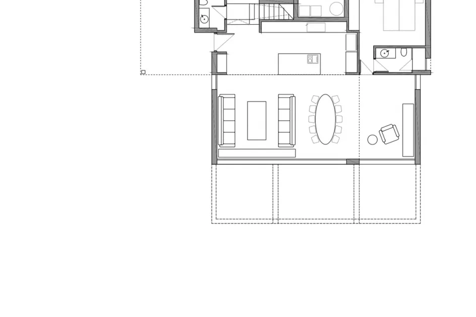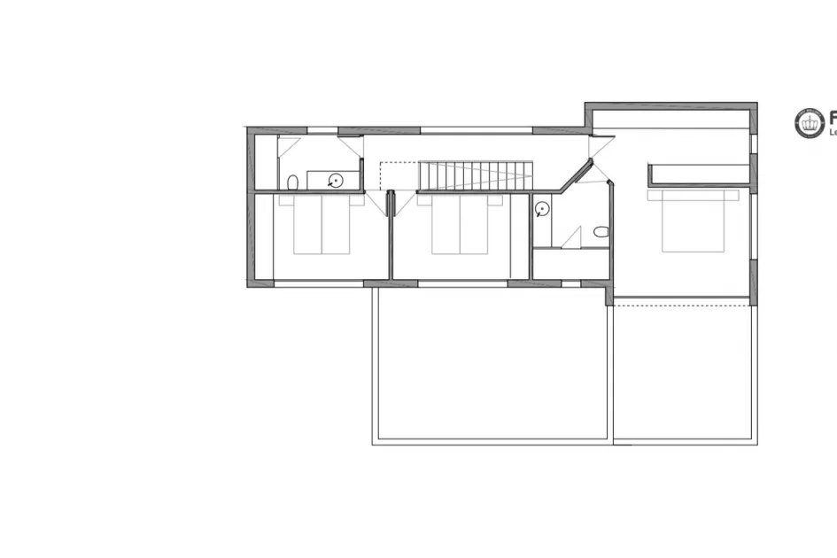 Das geplante Haus bietet insgesamt 4 Schlafzimmer und 5 Bäder (2 en Suite, 2 Gemeinschaftsbäder und 1 Gäste-WC). Im Erdgeschoss befinden sich ein Schlafzimmer, eine offene Küche mit Kochinsel, integriert in den Wohn-Essbereich, sowie der direkte Zugang zum Garten durch große Fensterfronten. Im Obergeschoss liegen drei Schlafzimmer, alle mit Zugang zu einer großen Terrasse. Von der 64 m² großen Dachterrasse aus genießt man freie Ausblicke auf den Wald und die Landschaft.