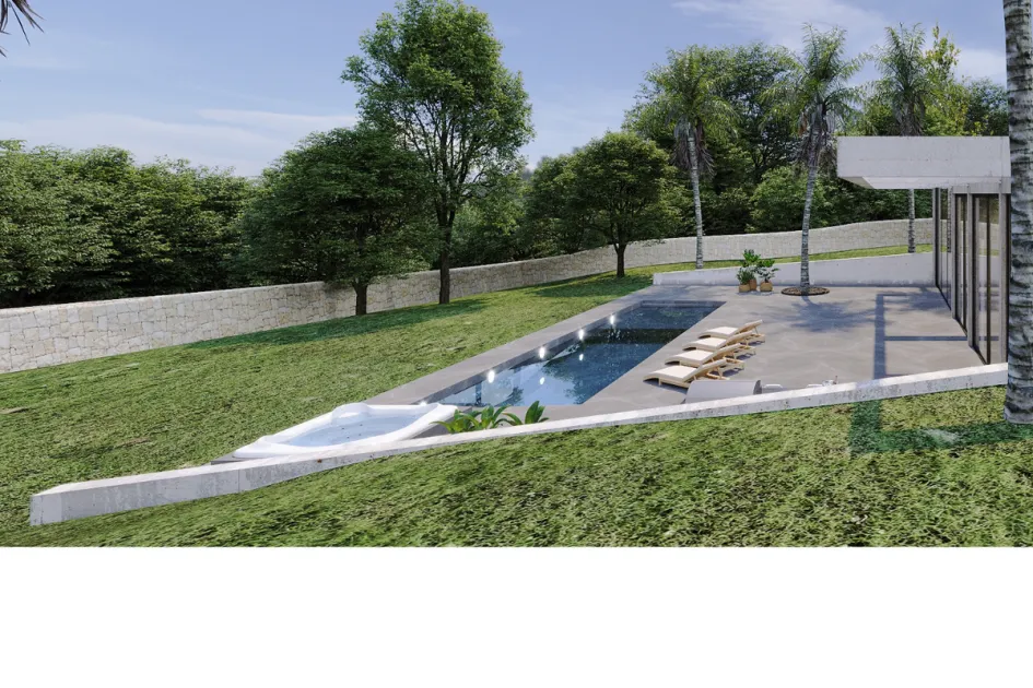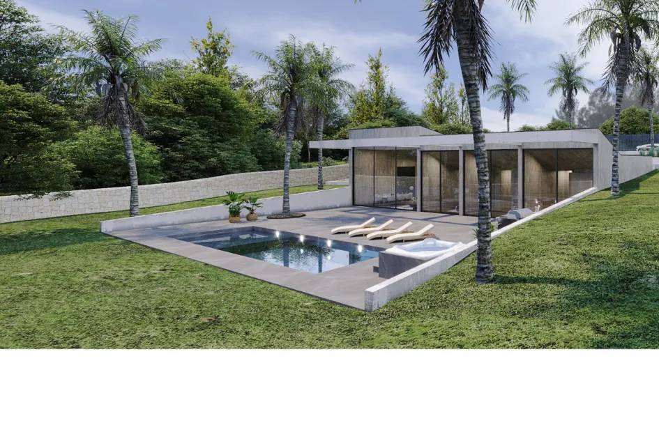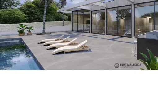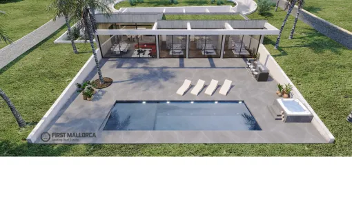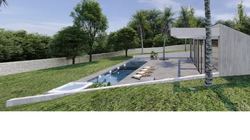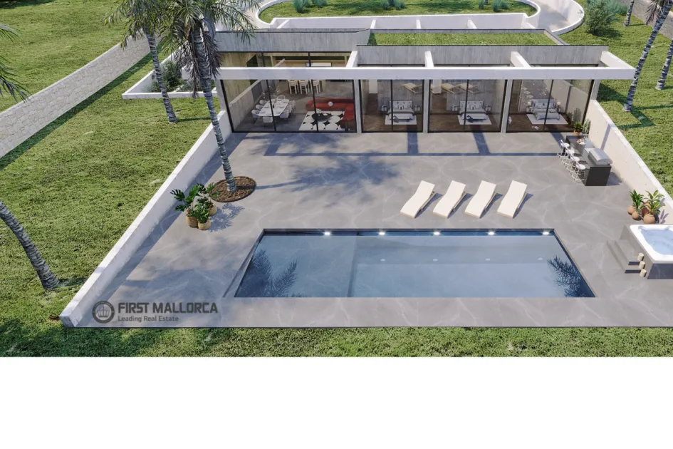 Dieses städtische Grundstück von 2.109 m² befindet sich in der Wohngegend Son Gual II und verfügt über ein Projekt für den Bau einer modernen, ebenerdigen Villa. Die Residenz ist so konzipiert, dass sie maximales Tageslicht und herrliche Ausblicke bietet. Sie überzeugt mit einer klaren Trennung zwischen Gemeinschafts- und Privatbereichen sowie großzügigen Außenflächen mit einer großen Südterrasse und einem Swimmingpool. Das geplante Haus bietet insgesamt 4 Schlafzimmer und 4 Badezimmer, davon 3 en suite. Alle Schlafzimmer befinden sich in einem privaten Flügel auf der Ostseite des Hauses, was morgens Sonnenlicht und Privatsphäre garantiert. Jedes Schlafzimmer ist für ein Doppelbett ausgelegt und mit Einbauschränken vorgesehen. Der Hauptwohnbereich ist ein großzügiger, offener Raum, der Küche, Esszimmer und Wohnzimmer miteinander verbindet. Die Küche verfügt über eine große Kochinsel mit Bar-Sitzgelegenheiten. Der Essbereich bietet Platz für einen großen Tisch mit acht Stühlen. Das Wohnzimmer öffnet sich direkt zur Terrasse und zum 60 m² großen Pool, was ein nahtloses Wohngefühl zwischen innen und außen schafft. Ein Außenstellplatz für mindestens drei Autos ist über eine geschwungene Rampe erreichbar, die zum Eingang des Hauses führt. Die Villa ist vollständig auf einer Ebene geplant, wobei die natürliche Hanglage des Grundstücks Charakter verleiht und erhöhte Ausblicke ermöglicht. Die Wohnanlage Son Gual II liegt 150 Meter über dem Meeresspiegel und ist mit Wasser, Strom, Abwasser und Telekommunikation ausgestattet. Der einzige Zugang sorgt für Privatsphäre und Sicherheit. Die Lage ist hervorragend: nur 10 Minuten vom Flughafen Palma, 15 Minuten vom Stadtzentrum und wenige Meter vom Golfplatz Son Gual entfernt. Kontaktieren Sie unser First Mallorca Team für weitere Informationen oder zur Vereinbarung eines Besichtigungstermins.