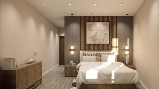 Objektbeschreibung: Dieses stilvolle Stadthaus befindet sich im Zentrum des wunderschönen Städtchens Binissalem, einem idyllischen Ort, der für seine Weintradition bekannt ist. Das Haus liegt in einer ruhigen Seitenstraße, nur wenige Schritte vom lebhaften Dorfplatz mit angrenzenden Restaurants entfernt. Vom Garagenbereich führt ein direkter Zugang ins Haus. Dort erwartet Sie ein großzügiger Wohn- und Essbereich mit offener Küche und direktem Zugang zur Gartenterrasse mit Pool. Ergänzt wird die Ebene durch ein Gäste-WC sowie einen praktischen Hauswirtschaftsraum. Eine weitere großzügige Terrasse, die sowohl vom Wohnzimmer als auch von der Küche zugänglich ist, lädt zu entspannten Grillabenden ein. Im Obergeschoss befinden sich insgesamt 3 Schlafzimmer. Zwei teilen sich ein Badezimmer. Das Hauptschlafzimmer mit Badezimmer en Suite begeistert durch die eigene großer Terrasse mit traumhaftem Ausblick sowie einem begehbaren Ankleidebereich mit Einbauschränken. Im Außenbereich genießen Sie völlige Privatsphäre: Die liebevoll angelegte Gartenlandschaft umrahmt die Terrassen, und der stilvolle Salzwasserpool überzeugt mit moderner, wartungsarmer Technik. Dieses Stadthaus vereint mediterranen Charme mit modernem Komfort und bietet die perfekte Kombination aus Privatsphäre, zentraler Lage und hochwertiger Ausstattung – ein ideales Zuhause im Herzen von Binissalem. Rendite aus Ferienvermietung: Mit dem „Porta Holiday Renditerechner“ können Sie zur ersten Orientierung unverbindlich Ihre potenziellen Einnahmen aus einer möglichen Ferienvermietung berechnen. Hinweis: Aufgrund der aktuellen Gesetzeslage kann es in bestimmten Gemeinden zu einer Beschränkung der Vermietbarkeit kommen bzw. werden keine neuen touristischen Lizenzen mehr vergeben. Ihr Porta Mallorquina Immobilienberater berät Sie gerne, ob die von Ihnen gewählte Immobilie davon betroffen ist. Hier geht’s zum Renditerechner. Lage & Umgebung: Binissalem erhielt seinen Namen in der maurischen Zeit, vor der Eroberung durch König Jaume I im Jahre 1229. Es liegt malerisch vor der Tramuntana, und zählt ca. 5.000 Einwohner. Wie in vielen mallorquinischen Dörfern sieht man von weitem zuerst die Kirche. Bekannt ist es wegen seiner grossen Weinanbaugebiete, und ein wirklich guten Rotwein wird nach ganz Europa exportiert. Selbstverständlich werden hier jährlich Weinlesefeste gefeiert.
