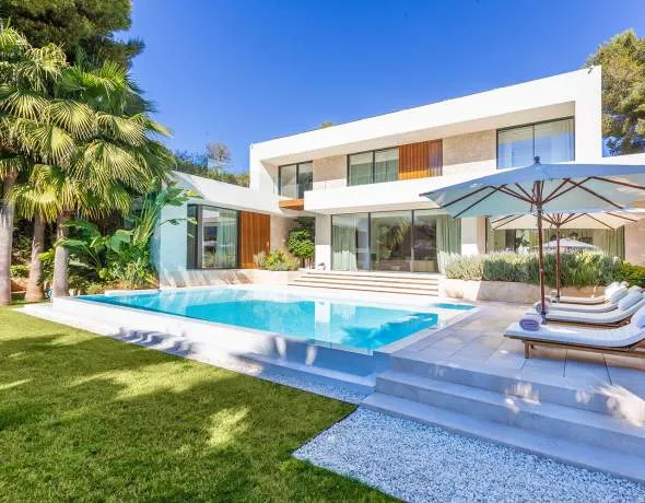 Diese exklusive Neubauvilla liegt in einer der begehrtesten Wohngegenden von Santa Ponsa, nur wenige Minuten vom Yachthafen, feinen Sandstränden und mehreren Golfplätzen entfernt. Die Wohnebene verteilt sich über zwei Etagen zuzüglich separatem Technikbereich. Auf einem 1.156 m² großen Grundstück bietet die Villa rund 402 m² Wohnfläche und vereint modernen Luxus mit mediterranem Stil.