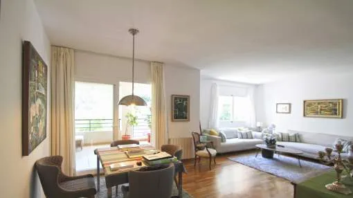 Traditionelles Apartment in der ruhigen Gegend von Bendinat an der Südwestküste Mallorcas. Die Immobilie mit einer Wohnfläche von 120m2 ist aufgeteilt in ein geräumiges Wohnzimmer mit Essbereich und eine separate voll ausgestattete Küche mit Hauswirtschaftsraum, die beide durch eine helle Terrasse mit Chill-bereich und Blick auf den Garten, 4 Schlafzimmer und 2 Badezimmer verbunden sind. Es ist mit Zentralheizung, Klimaanlage und Parkett ausgestattet. Die Anlage bietet einen Swimmingpool, einen Aufzug und gepflegten Gärten. Bendinat ist eine bekanntes Viertel mit einer Vielzahl von Restaurants, Boutiquen und Supermärkten. Es liegt in der Nähe von Illetas mit seinem Sandstrand und das Zentrum von Palma erreichen Sie innerhalb von 10 Fahrminuten. EnergieausweisArt: in Bearbeitung