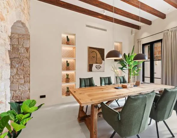 Dieses stilvoll sanierte Stadthaus liegt nur wenige Gehminuten vom lebhaften Marktplatz Santanyís entfernt. Moderne Architektur, historische Elemente und Naturstein wurden harmonisch miteinander kombiniert, sodass der authentische Charme des Hauses bewahrt wurde. Ein echtes Schmuckstück ist entstanden. Hochwertige Ausstattung und ein Fahrstuhl, der alle 3 Etagen verbindet, schaffen höchsten Komfort.