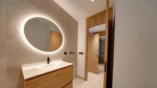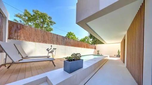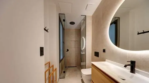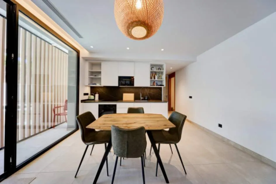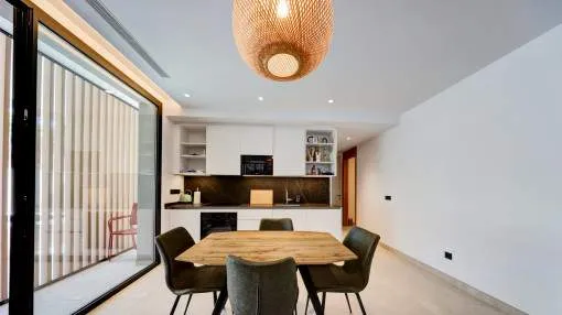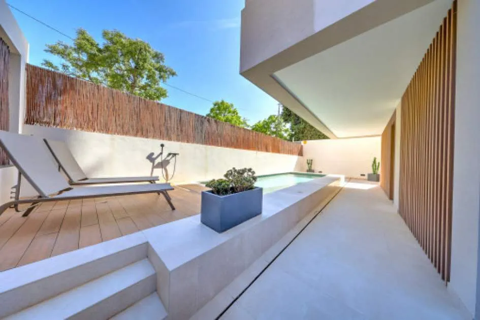 Details: This charming ground-floor apartment impresses with its central location in the heart of Palma and its direct access to the communal pool – a true highlight for city lovers who value comfort. The living area of approximately 72 sqm is distributed over a bright living and dining area with an open-plan kitchen, one bedroom, a modern bathroom, and an additional guest WC. Large windows create a welcoming atmosphere and provide a seamless connection between indoor and outdoor spaces. Two terraces with a total of around 11 sqm offer ideal spots to relax or enjoy breakfast outdoors. Thanks to underfloor heating and air conditioning, you can enjoy a pleasant indoor climate all year round – cool in summer and cozy in winter. A private underground parking space completes this attractive offer, providing additional comfort for urban living. This apartment combines modern design, high-quality features, and a prime location – perfect for those seeking stylish living in the heart of Palma. Location & surrounding area: If you are looking for a green but centrally-situated area in the town of Palma de Mallorca then Son Armadams is the place for you. The district is surrounded by a wonderful park on a hill which leads to Bellver castle from where breathtaking views over the whole of the bay of Palma can be enjoyed. The park is also an ideal place for all types of outdoor activities, and in the inner courtyard of the castle all kinds of concerts take place during the summer months. The upper part is a quiet residential area and was one of the most exclusive in Palma with its impressive villas. Today it is a privileged neighbourhood for families wishing to live in a quiet area, but still be within easy reach of all amenities. Son Armadams is only a few minutes away from the trendy district of Santa Catalina , one of the town's most popular places for gastronomy and nightlife. The Paseo Maritimo and the harbour, where lovely walks and the nightlife can be enjoyed, is also only a stone's throw away. Son Armadams is only a few minutes by foot from the historic town centre and its main streets, where the best shopping possibilities on the island can be found. It is a residential oasis directly in the town and an excellent choice when seeking peace and quiet, although still wishing to be within easy reach of all facilities.