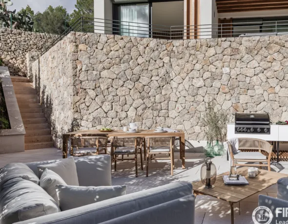 Das Erdgeschoss-Apartment ist ein Rückzugsort, in dem Architektur und Natur miteinander verschmelzen. Auf zwei Terrassenebenen genießen Sie abwechslungsreiche Außenbereiche zum Sonnenbaden, Essen im Freien oder ruhige Momente. Ein privater Plunge-Pool lädt an heißen Tagen zum Abkühlen ein, während der Teilmeerblick das mediterrane Ambiente unterstreicht.
