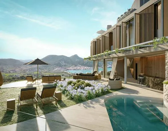 Dieses exklusive Meerblick-Penthaus mit dem Namen „The Villa“ bildet den krönenden Abschluss der Neubauresidenz mit der Referenz 27006 und erstreckt sich über mehrere Etagen dieses einmaligen architektonischen Gebäudekomplexes in terrassierter Form. Es befindet sich in der begehrten Gegend von Port Andratx, bekannt für ihre atemberaubende Naturschönheit, kristallklare Gewässer und luxuriöse Annehmlichkeiten. Die Immobilie liegt in einer ruhigen und prestigeträchtigen Nachbarschaft, die Ruhe und Privatsphäre bietet und dennoch in der Nähe zahlreicher erstklassiger Restaurants, Boutiquen und Yachthäfen liegt. Port Andratx selbst ist ein angesagter Treffpunkt für internationale Besucher und bietet eine einzigartige Mischung aus traditionellem Charme und modernem Luxus.