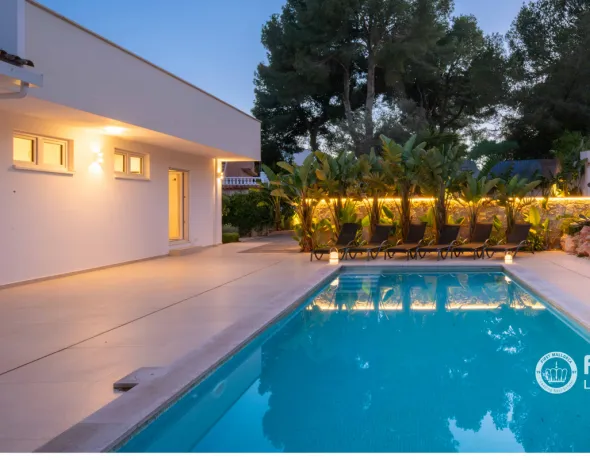 Diese stilvoll renovierte Villa vereint modernes Design, hohen Wohnkomfort und eine hervorragende Lage im Südwesten Mallorcas. Auf einem ca. 1.195 m² großen Grundstück gelegen, wurde die Immobilie im Jahr 2023 mit viel Liebe zum Detail umfassend modernisiert.