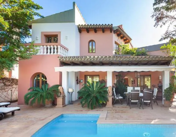 Das Haus mit einem warmen Ambiente ist sehr gepflegt, und im mallorquinischem Einrichtungsstil ein Juwel mit Innen- und Aussenbar. Es steht auf einem wunderschön angelegten Einzelgrundstück mit Privatpool, vielen Palmen, Oleanderhecken und bietet lauschige Sonnen- und Schattenterrassen, um das milde Klima und den schönen Ausblick zum Galatzo und über den Golfplatz zu genießen.