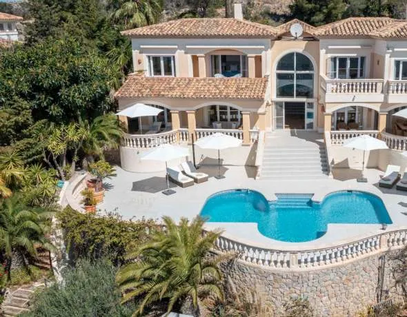 Es liegt majestätisch auf einem großen, nach Südwesten ausgerichteten Grundstück und bietet einen unschlagbaren Blick über den gesamten Hafen und die blaue Weite des Mittelmeers.