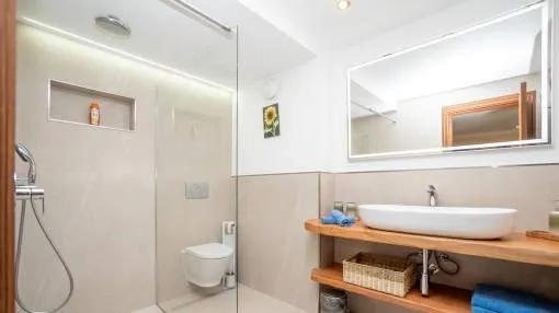 Objektbeschreibung: Willkommen in dieser beeindruckenden zweistöckigen Villa, die sich in einer ruhigen Umgebung in Son Toni befindet. Auf einem großzügigen Grundstück von fast 2.000 qm erbaut, bietet diese Immobilie viel Platz und Privatsphäre in einer fesselnden natürlichen Umgebung. Mit 4 Schlafzimmern und 3 Badezimmern, darunter en-suite Optionen, ist diese Villa eine praktische Wahl für Ihr nächstes Zuhause. Der Innenraum besticht durch gut beleuchtete Räume und funktionales Design. Die Hauptetage umfasst ein gemütliches Wohnzimmer, eine voll ausgestattete Küche und einen angrenzenden Essbereich. Die Zimmer der Villa auf beiden Etagen bieten eine komfortable und ruhige Atmosphäre. Einige Zimmer verfügen über en-suite Badezimmer für zusätzlichen Komfort. Alle Räume sind geschmackvoll eingerichtet, um eine gemütliche Atmosphäre zu schaffen. Die Villa ist mit einer Zentralheizung mit Öl und Klimaanlage in allen Räumen ausgestattet. Im Außenbereich beeindruckt die Villa mit einem gepflegten Garten und einem erfrischenden Pool. Das 2.000 qm große Grundstück ermöglicht es Ihnen, die natürliche Umgebung zu genießen. Ein bestimmter Bereich ist für Grillabende und Freizeitaktivitäten vorgesehen. Die Villa verfügt auch über eine Chill-out-Area zum Entspannen. Zusätzlich bietet die Immobilie eine große Garage und eine touristische Lizenz, die eine Möglichkeit für zusätzliches Einkommen durch Vermietungen darstellt. Lage & Umgebung: Sa Pobla, im Herzen Mallorcas gelegen, ist bekannt für seine fruchtbaren Ebenen, traditionelle Architektur und lebendige Kultur. Dieser charmante Ort bietet eine einzigartige Kombination aus ländlicher Ruhe und Zugang zu hervorragenden Annehmlichkeiten. Mit seiner Nähe zu wunderschönen Stränden und der Serra de Tramuntana ist Sa Pobla ein idealer Standort für diejenigen, die das authentische mallorquinische Leben genießen möchten. Die Gemeinde zeichnet sich durch ihre Gastfreundschaft, vielfältige Gastronomie und das ganze Jahr über stattfindende Feste aus. Die Immobilienlandschaft von Sa Pobla zeichnet sich durch eine vielfältige Auswahl aus: großzügige Dorfhäuser im Ortskern, umgeben von der malerischen Kulisse traditioneller Architektur, großflächige Fincas, die das flache Umland prägen und einen traumhaften Blick auf die Bergkette der Sierra de Tramuntana bieten. Hinzu kommen die exklusiven Villengegenden S'Obac, Crestatx und Son Toni, die sich durch ihre Privatsphäre und Exklusivität auszeichnen und in nur wenigen Autominuten von der malerischen Stadt Pollença entfernt liegen. Sa Pobla bietet somit eine einzigartige Mischung aus ländlichem Charme und exklusivem Wohnen, ideal für diejenigen, die das Beste aus beiden Welten suchen. Zudem liegen die nächsten Strände von Playa de Alcúdia und Playa de Muro nur 10 Autominuten entfernt, was Sa Pobla zu einem idealen Standort für Liebhaber des Meeres und der Sonne macht. Diese Nähe zu einigen der schönsten Strände Mallorcas bietet den perfekten Ausgleich zum ländlichen Leben und macht Immobilien in Sa Pobla besonders attraktiv für diejenigen, die die Nähe zum Wasser schätzen.