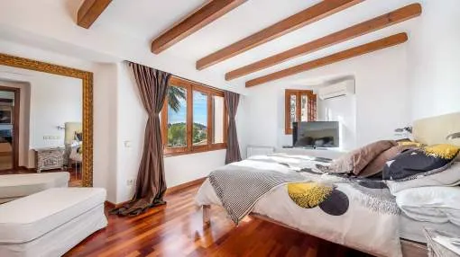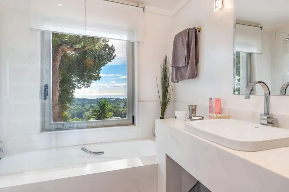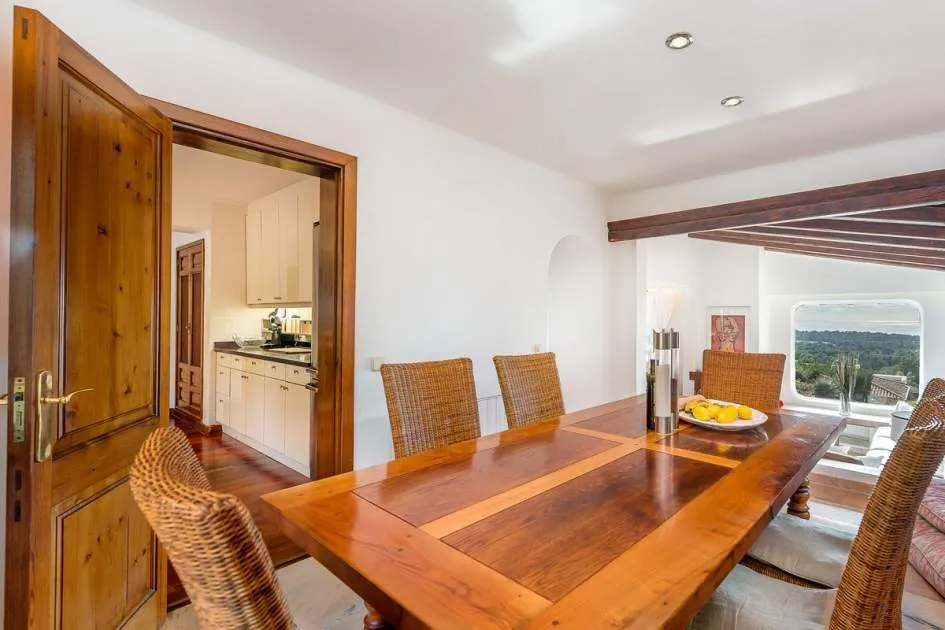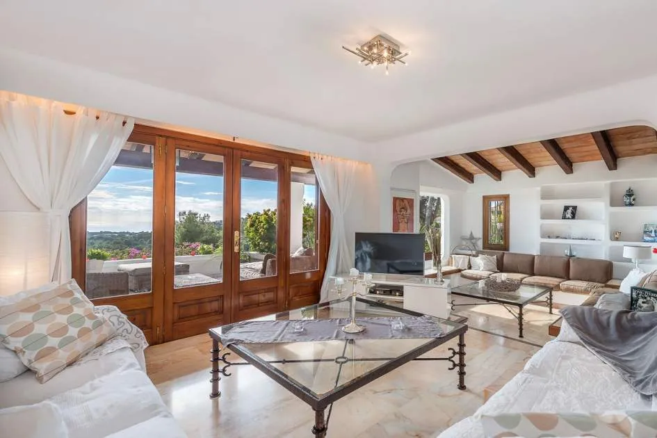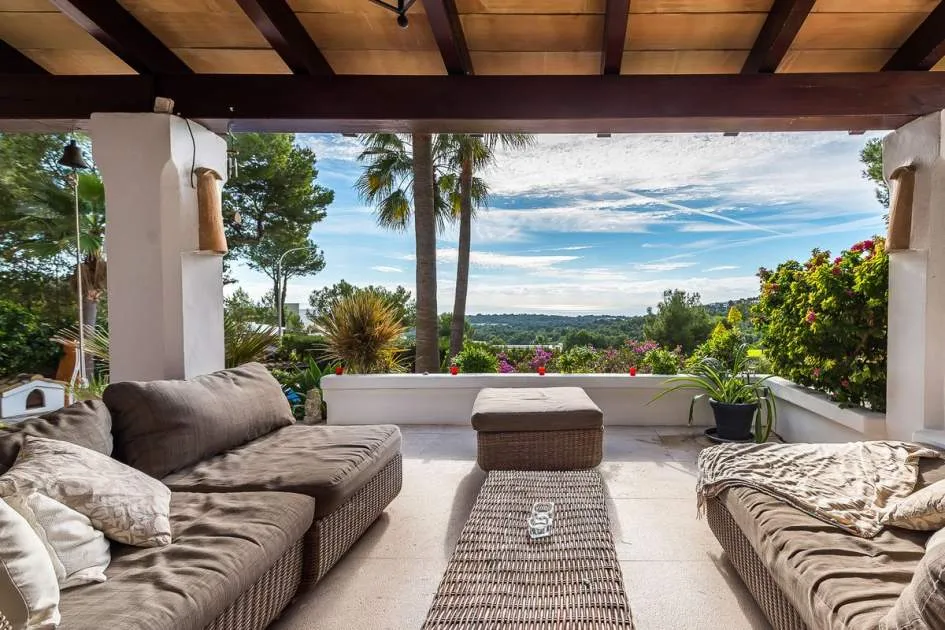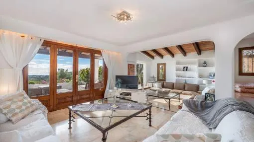 Diese großzügige Villa im mediterranen Stil bietet einen tollen Panoramablick auf das Meer und befindet sich in der gefragten Wohngegend Bendinat in der Nähe des Königlichen Golfplatzes, mehrerer Strände und des eleganten Yachthafens Puerto Portals.