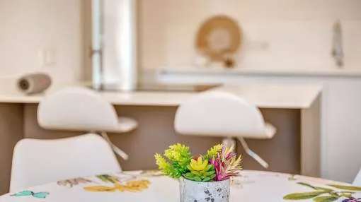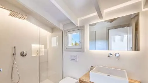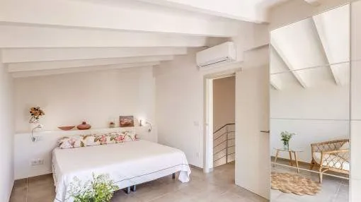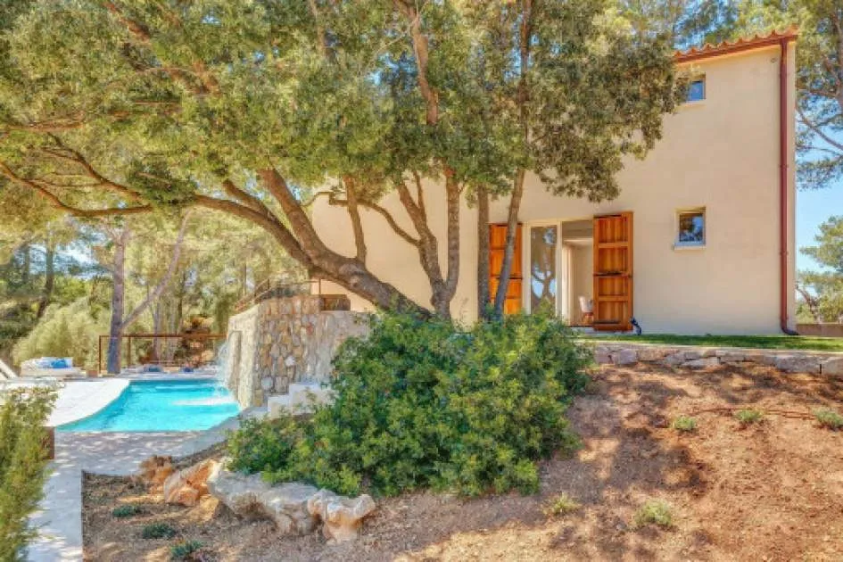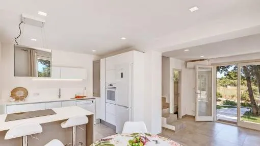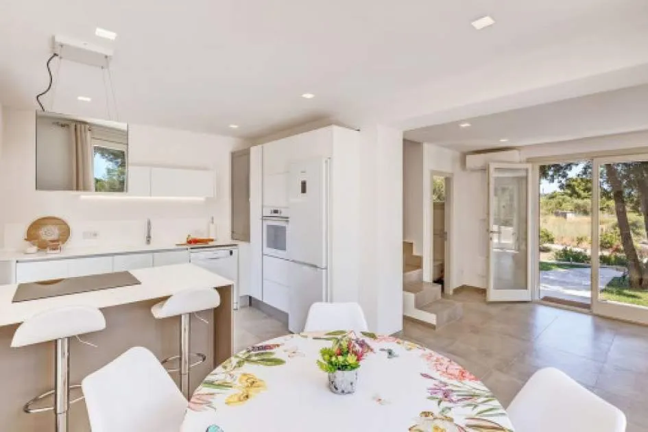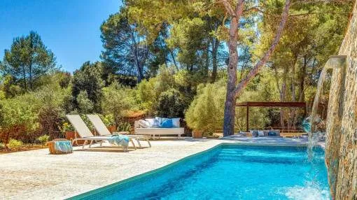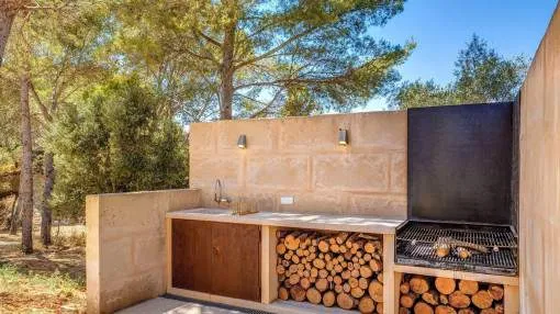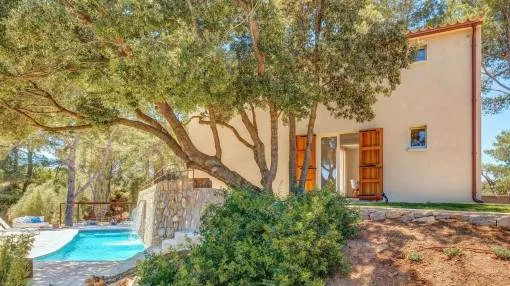 Objektbeschreibung: Winterrefugium in Artà – stilvolle Finca zur Saisonmiete von November bis März Eingebettet in die sanften Hügel von Artà, bietet die moderne und stilvoll eingerichtete Finca Sos Fuyes ein Refugium mit Privatsphäre und herrlichem Blick auf die umliegende Landschaft. Auf dem rund 16.000 qm großen Grundstück genießen Sie mediterranes Flair und viel Raum zum Entspannen. Die Wohnfläche von ca. 86 qm erstreckt sich über 2 Etagen und überzeugt mit einem offenen, hellen Wohnkonzept. Das großzügige Wohnzimmer mit gemütlicher Sitzecke geht harmonisch in die moderne, voll ausgestattete Küche mit Kochinsel und Essbereich über. Zwei einladende Schlafzimmer – eines mit Doppelbett, das andere mit zwei Einzelbetten – sowie ein stilvolles Badezimmer und ein zusätzliches Gäste-WC bieten hohen Komfort für Paare oder kleine Familien. Im Außenbereich erwartet Sie eine großzügige Terrasse mit Lounge- und Essbereich, eine überdachte BBQ-Station mit Außenküche sowie ein privater 30 qm Pool mit Wasserfall, der zum Entspannen einlädt. Zur Ausstattung gehören Klimaanlage warm/kalt, WLAN, Sat-TV, Kinderbett, Hochstuhl, Balkon, privater Garten und Stellplätze. Die Finca ist ideal für Paare, die die Wintermonate auf Mallorca verbringen möchten – in ruhiger Lage mit guter Erreichbarkeit. Das charmante Städtchen Artà mit seinen Restaurants, Geschäften und Wochenmarkt ist nur wenige Minuten entfernt, ebenso wie die schönsten Strände der Region in 10 bis 15 km. Lage & Umgebung: Artà ist eine charmante Kleinstadt im Nordosten Mallorcas, die für ihren authentischen Charakter, ihre historische Altstadt und ihre naturnahe Lage bekannt ist. Gelegen am Rand des Naturparks Llevant, bietet Artà eine ideale Kombination aus Ruhe, Kultur und mediterranem Lebensgefühl. Besonders beliebt ist der Wochenmarkt, der jeden Dienstagvormittag im Zentrum stattfindet und mit frischen Produkten, Kunsthandwerk und lokaler Atmosphäre überzeugt. Die erhöhte Lage des Santuari de Sant Salvador bietet einen herrlichen Blick über die Dächer der Stadt bis hin zur Küste. In der Umgebung laden malerische Wanderwege, das prähistorische Dorf Ses Païsses und ruhige Badebuchten wie Cala Torta oder Cala Mitjana zu Ausflügen ein. Wer das ursprüngliche Mallorca sucht, wird in Artà fündig