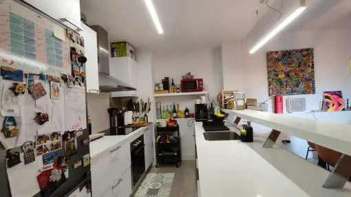 - Küche mit integriertem Wohnbereich