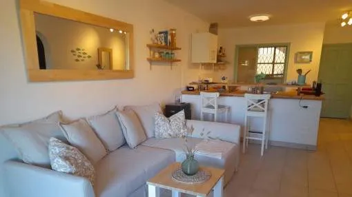 Objektbeschreibung: Diese gepflegte und vollmöblierte Mietwohnung befindet sich in attraktiver Lage in Cala Santanyí und steht zur Saisonmiete vom 24.07.2026 bis 04.09.2026 zur Verfügung. Die Wohnung liegt in einer ruhigen, gepflegten Wohnanlage mit Gemeinschaftspool und bietet ideale Voraussetzungen für einen entspannten Aufenthalt auf Mallorca. Mit einer Wohnfläche von ca. 69,5 m² verfügt die Wohnung über zwei Schlafzimmer, ein Badezimmer sowie einen offenen, hell gestalteten Wohn-, Ess- und Küchenbereich. Die offene Küche ist vollständig ausgestattet und geht fließend in den Wohn- und Essbereich über. Von hier aus besteht direkter Zugang zum Balkon / zur Terrasse, die zum Verweilen im Freien einlädt. Im Wohnbereich ist ein Klimagerät vorhanden, das auch an warmen Sommertagen für angenehme Temperaturen sorgt. Die Wohnung wird vollmöbliert und komplett ausgestattet vermietet. Der Strand von Cala Santanyí ist in nur ca. 5 Gehminuten erreichbar. Einkaufsmöglichkeiten, Restaurants und Cafés befinden sich ebenfalls in der näheren Umgebung. Die Nebenkosten für Strom werden separat nach Verbrauch abgerechnet. Die Kaution beträgt 1.000,00 EUR. Die Preise für monatsweise Saisonvermietung MonatPreisJanuar- Nicht verfügbar - Februar- Nicht verfügbar - März- Nicht verfügbar - April- Nicht verfügbar - Mai- Nicht verfügbar - Juni- Nicht verfügbar - Juli- Nicht verfügbar - August€ 2.000,- September- Nicht verfügbar - Oktober- Nicht verfügbar - November- Nicht verfügbar - Dezember- Nicht verfügbar - Lage & Umgebung: Santanyí im Südosten Mallorcas gehört zu den beliebtesten Orten der Insel und hat über die Jahrhunderte schon Römern, Arabern und Piraten getrotzt. Das hübsche Städtchen erhebt sich mit seinen goldfarbenen Sandsteinfassaden aus dem grünen Umland und lockt Urlauber wie Einheimische regelmäßig mittwochs und samstags auf den farbenfrohen Wochenmarkt. Rund um die Plaza Mayor bieten zahlreiche Cafés und Restaurants ein breites kulinarisches Angebot. Die umliegenden kleinen Gassen mit netten Geschäften laden zum Bummeln ein. Für Wanderfans bietet der nahe gelegene Naturpark Mondragó zahlreiche Routen, während Badefans in den idyllischen Buchten der Ostküste wie Cala Santanyí oder Cala Llombarts auf ihre Kosten kommen. Nicht weit entfernt liegen der Hafen von Portocolom und der Golfplatz Vall d´Or.