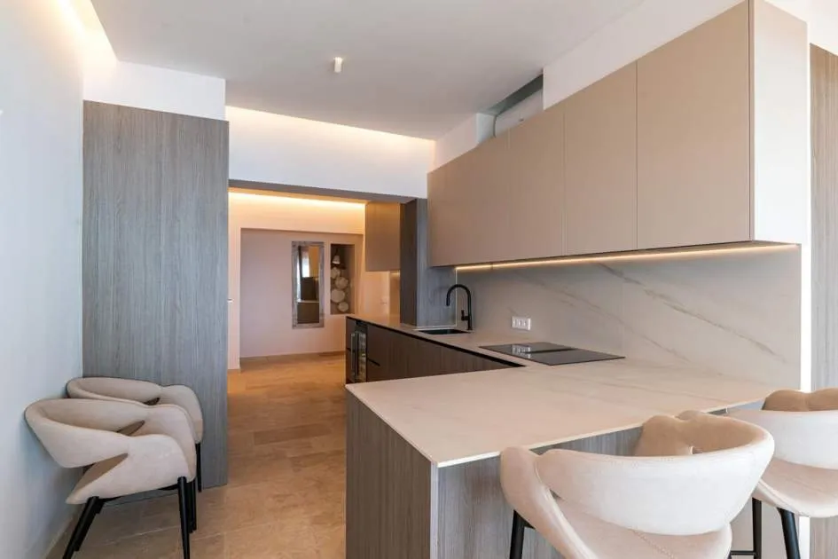Elegante Wohnung mit fantastischem Meerblick und nur wenige Schritte von den Stränden von Illetas entfernt. Die Immobilie wurde komplett renoviert und verfügt über folgende Aufteilung: eine Eingangshalle, ein Wohn-/Esszimmer mit Türen zur sonnigen Terrasse, eine Designerküche mit Frühstückstheke, 2 Schlafzimmer und 2 Badezimmer, von denen eines en suite ist. Weitere Ausstattungsmerkmale sind: Klimaanlage (warm und kalt), Sonnenschutz, Doppelverglasung, 2 Wandfernseher, Steinböden, Einbauschränke und ein Parkplatz. Illetas liegt nur 10 Autominuten vom historischen Stadtzentrum von Palma entfernt und bietet eine Vielzahl von lokalen Geschäften, Restaurants, Cafés und Supermärkten.