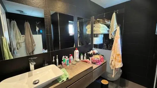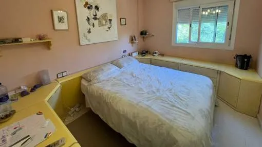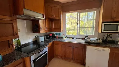 Eine wunderschön gelegene Immobilie steht zur Vermietung in der ruhigen Gegend von Cas Català zur Verfügung und verfügt über 3 Schlafzimmer und 3 Badezimmer, eines davon en suite, gestaltet für Komfort und Funktionalität. Alle Räume bieten Meerblick, der Helligkeit und eine entspannte Atmosphäre im gesamten Haus schafft.