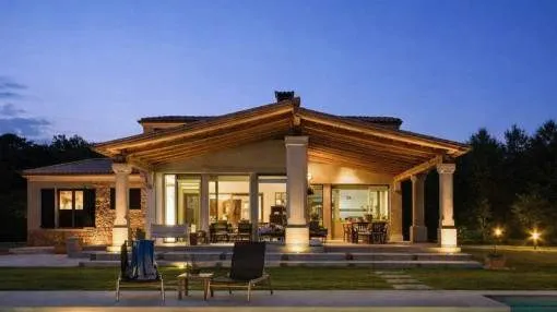 Objektbeschreibung: Diese Traumfinca befindet sich in der äußerst ansprechenden und sehr begehrten Region des Golfplatzes von Pollensa und bietet, dank ihres natürlich gewachsenen Grundstückes, absolute Privatsphäre in himmlischer Ruhe. Das sehr großzügig gestaltete Landhaus bietet auf 2 Ebenen insgesamt 4 große Doppelschlafzimmer, 3 Badezimmer (zwei en Suite), einen luxuriösen Wohnsalon mit Kamin und getrenntem Esszimmer, eine getrennte, modern ausgestattete Küche, sowie weitere Nutzräumlichkeiten und einen schönen Weinkeller im Untergeschoss. Besonders jedoch die Außenbereiche mit weiten, teils überdachten Terrassen, einem eleganten Poolbereich, sowie einem großzügig gestalteten Grillhaus und großen Rasenflächen, verleihen dieser Spitzenimmobilie den eleganten Charme eines perfekten und luxuriösen Landanwesens. Rendite aus Ferienvermietung: Mit dem „Porta Holiday Renditerechner“ können Sie zur ersten Orientierung unverbindlich Ihre potenziellen Einnahmen aus einer möglichen Ferienvermietung berechnen. Hinweis: Aufgrund der aktuellen Gesetzeslage kann es in bestimmten Gemeinden zu einer Beschränkung der Vermietbarkeit kommen bzw. werden keine neuen touristischen Lizenzen mehr vergeben. Ihr Porta Mallorquina Immobilienberater berät Sie gerne, ob die von Ihnen gewählte Immobilie davon betroffen ist. Hier geht’s zum Renditerechner. Lage & Umgebung: Pollensa, unter Insidern bekannt als die „zweite Hauptstadt“ der Insel, umgibt ein ganz besonderes, gar fürstliches Charisma. Am nördlichen Ausläufer des Tramuntana-Gebirgszuges gelegen, bietet dieses romantische Städtchen in erster Linie ein gemässigtes Bergpanorama rund um den Berg Puig de Maria, welcher das Wahrzeichen dieser Region darstellt. Ein reichhaltiges, vor allem musikalisches Kulturangebot und eindeutige Top-Immobilienlagen, wie entlang des Calvario (Kalvarienberg) mitten im Zentrum, oder des friedlich noblen Villenviertels La Font am Berghang, sowie einer traumhaft schönen ländlichen Umgebung über die angrenzenden Täler Vall D´en March, Vall D´Colonya und Vall D´Aixartell verleihen diesem einmaligen Ort einen unvergleichlichen Charme und bieten so manches Juwel, welches, ob einer modernen Infrastruktur, für die perfekte Ferienimmobilie wie geschaffen ist. Auch für Liebhaber des Konzeptes des Mallorquinischen Stadthauses ist Pollensa genau der richtige Ort – viele hübsche Kleinode gibt es hier zu entdecken, welche entweder bereits komplett renoviert worden sind, oder noch genug Freiraum zur persönlichen Geschmacksentfaltung bieten.
