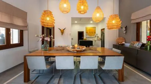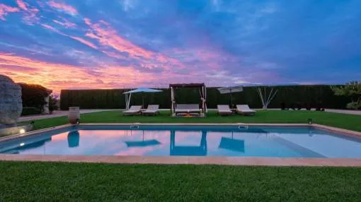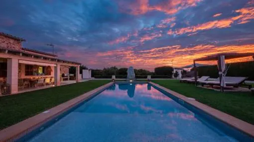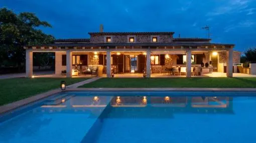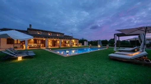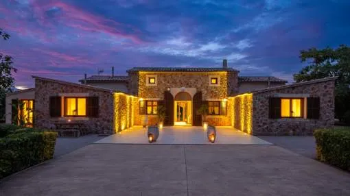Diese unglaubliche Finca befindet sich im Süden der Insel, nur 10 Minuten vom herrlichen Strand Es Trenc und seinem Naturpark entfernt. In vollem Kontakt mit der Natur bietet es seinen Bewohnern Privatsphäre und Ruhe, und gleichzeitig ist es weniger als 10 Minuten von der Stadt Campos mit allen wichtigen Dienstleistungen entfernt. Sein einzigartiges Design verbindet natürliche Elemente mit moderner Kunst und Dekoration und fügt orientalische Elemente hinzu, die ihm einen avantgardistischen Touch verleihen. Die Villa ist aufgeteilt in ein geräumiges Wohn-Esszimmer mit hohen Decken und Kamin, eine voll ausgestattete Küche mit Insel, 4 große Schlafzimmer mit Doppelbetten und 2 Badezimmer mit Dusche und Badewanne. Darüber hinaus verfügt das Haus über einen großen Swimmingpool von 60 qm und einen sorgfältig angelegten Garten, in dem Sie die heißesten Tage genießen können. Das Haus verfügt über SONOS Sound-System-Installation, Alarmanlage, Satelliten-Internet-Anschluss, Klimaanlage und elektrische Heizung durch Sonnenkollektoren betrieben. Für weitere Informationen und Besichtigungen wenden Sie sich bitte an First Mallorca.