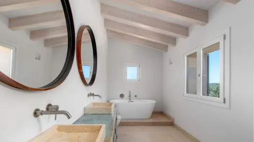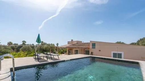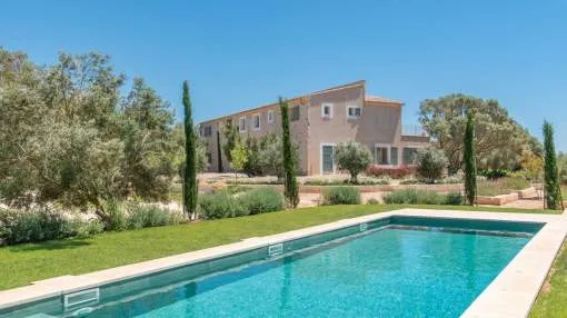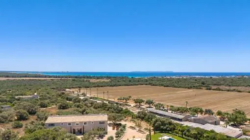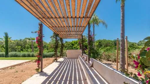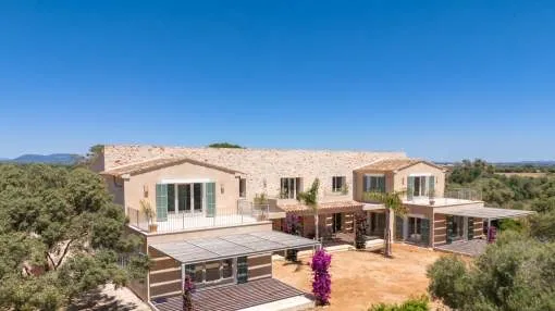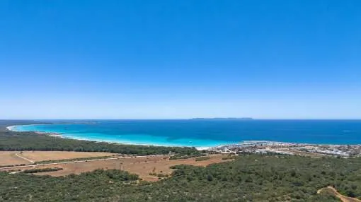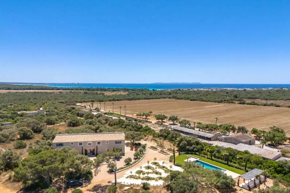 Sie träumen von einer Finca in Strandnähe mit viel Privatsphäre und mediterranem Flair? Diese stilvolle Neubauvilla nahe Sa Rápita könnte genau das sein, wonach Sie suchen. Nur wenige Minuten vom türkisblauen Naturstrand Es Trenc entfernt, liegt dieses außergewöhnliche Anwesen auf einem ca. 30.000 m² großen, gepflegten Grundstück mit herrlichem Blick bis zur Insel Cabrera.