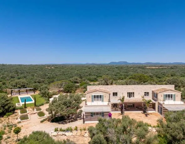 Sie träumen von einer Finca in Strandnähe mit viel Privatsphäre und mediterranem Flair? Diese stilvolle Neubauvilla nahe Sa Rápita könnte genau das sein, wonach Sie suchen. Nur wenige Minuten vom türkisblauen Naturstrand Es Trenc entfernt, liegt dieses außergewöhnliche Anwesen auf einem ca. 30.000 m² großen, gepflegten Grundstück mit herrlichem Blick bis zur Insel Cabrera.