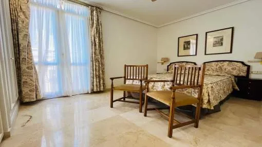 Diese Wohnung in einer der exklusivsten Gegenden von Palma, neben der Plaza de la Reina, der Kathedrale und dem Palast L'Almudaina, wird für einen längeren Zeitraum vermietet. Diese Wohnung zeichnet sich durch ihre großzügigen Räume, die hohe Helligkeit und einen privilegierten Blick auf die Gärten aus.