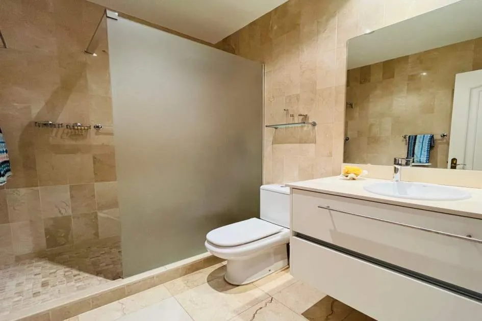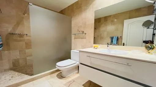 Zur Ausstattung gehören Marmorböden, Aluminiumfenster und -türen sowie eine Klimaanlage mit Luftkanälen.