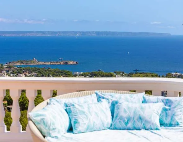 Diese Villa im mediterranen Design liegt in den ruhigen Hügeln von Costa d’en Blanes – einer der begehrtesten Wohnlagen im Südwesten Mallorcas. Nur wenige Minuten von Palma entfernt, bietet die erhöhte Lage einen weiten Blick auf das Meer und die Bucht von Palma sowie ein Höchstmaß an Privatsphäre.